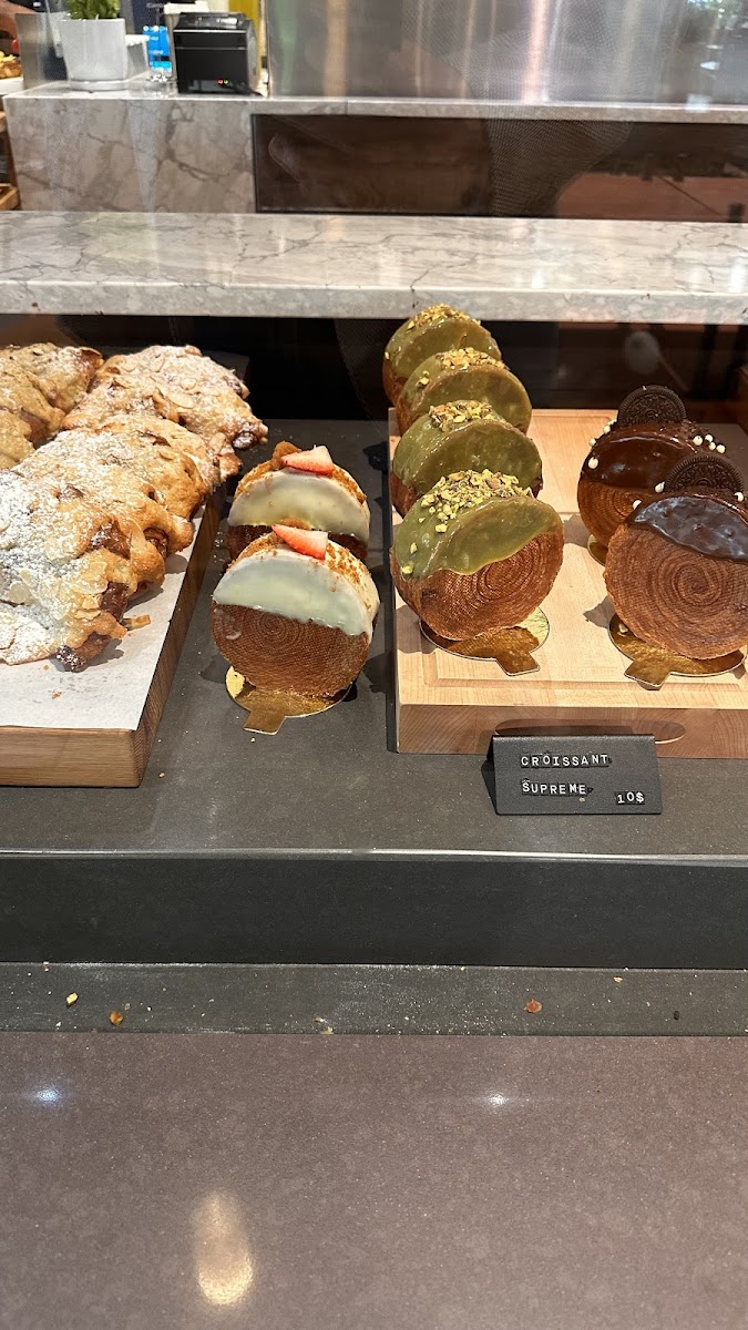 Visitors often come here for the coffee first—the cappuccinos and moka coffee stand out, especially when paired with one of their unique pastries like the pistachio croissant or the eggplant croissant. These baked goods, crafted with attention and creativity, are a highlight, appealing to those who appreciate artisanal-style treats. The balance of traditional café fare with Mediterranean touches extends to the savory side with options like shakshuka, smoked salmon tartine, and various crostinis, which introduce fresh flavors without being overly heavy.